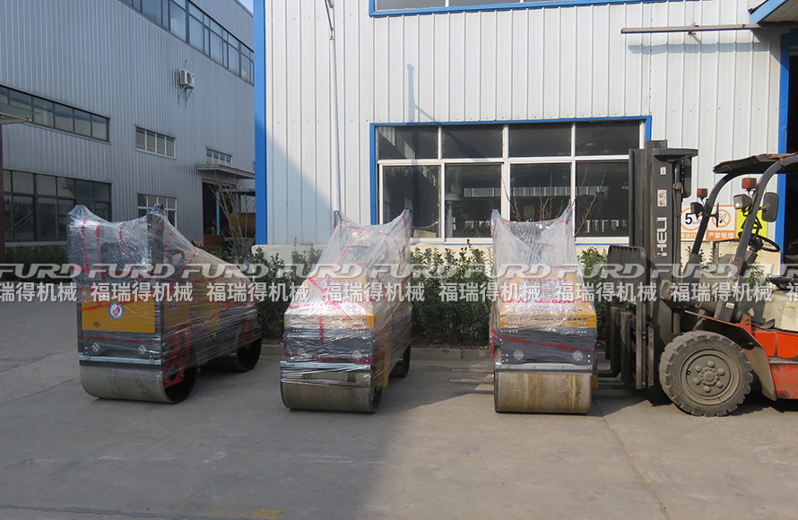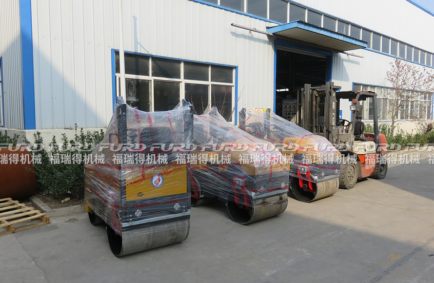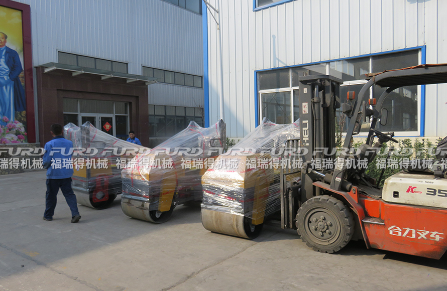 3月26日,福瑞得機械3臺座駕雙鋼輪壓路機打包發(fā)往浙江。