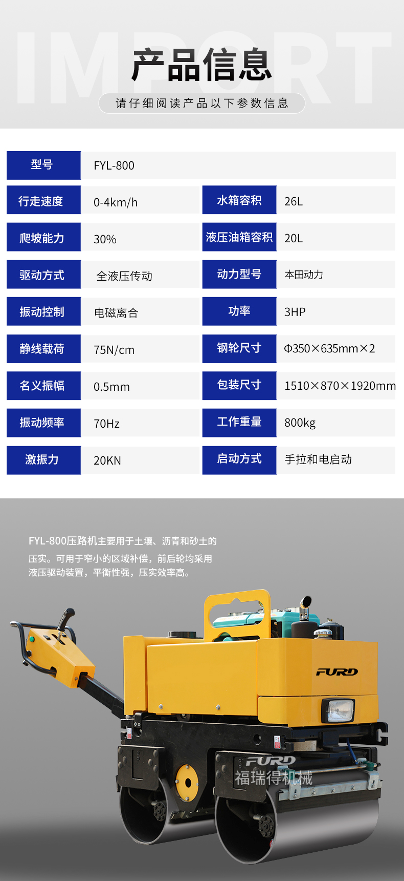 主要用于溝渠基礎(chǔ),道路,體育場地的壓實整平,也可用于壓實瀝青表面的作業(yè)。