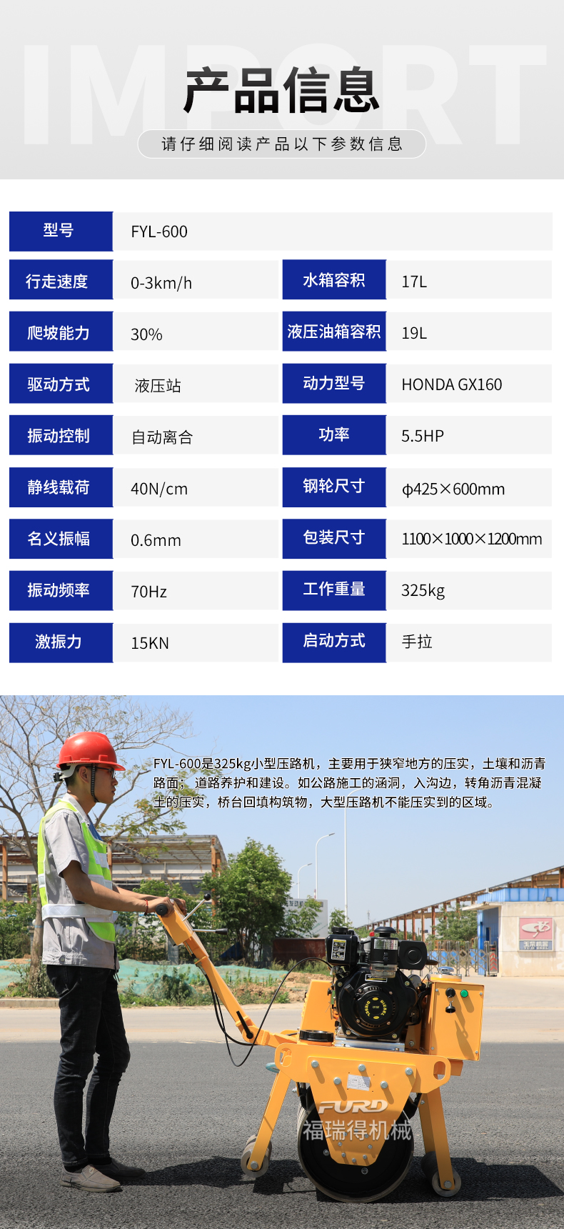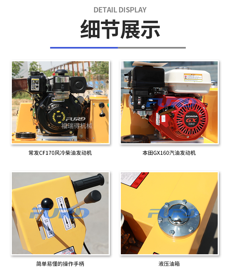 主要用于溝渠基礎(chǔ),道路,體育場地的壓實整平,也可用于壓實瀝青表面的作業(yè)。
