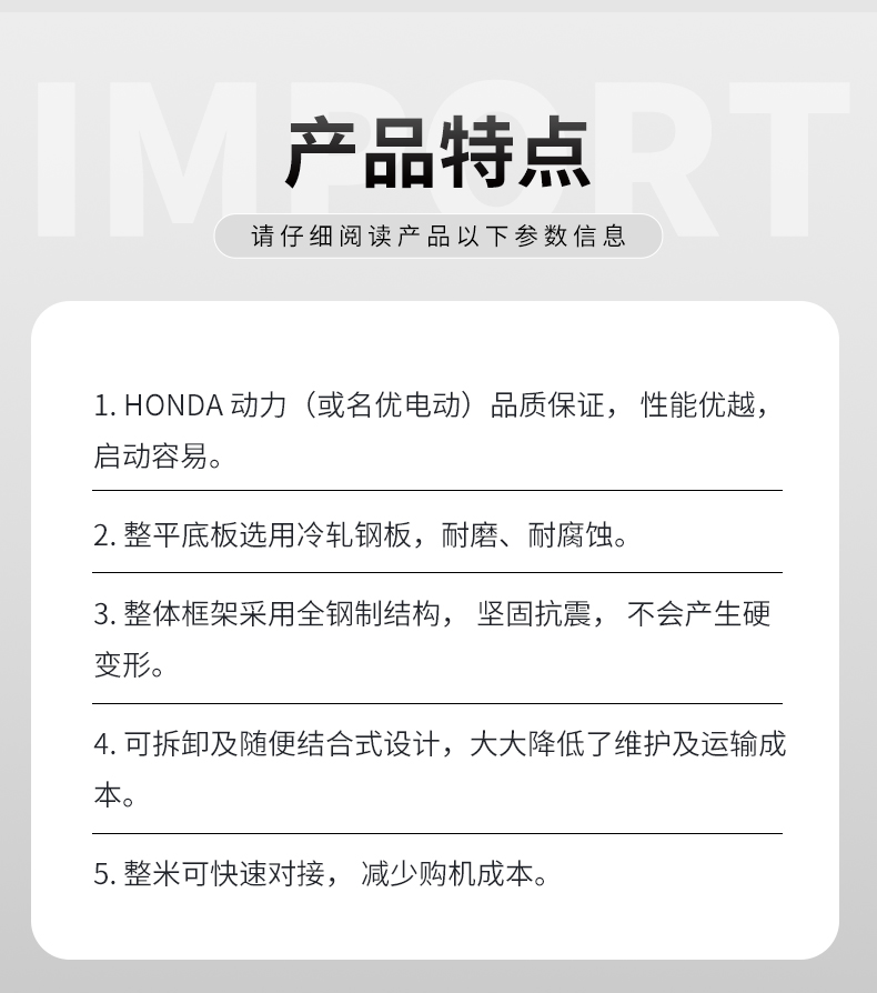 用于混凝土地面的提漿、壓實、整平、是修建公路、車間、廣場、現代化廠房的新型設備。是傳統(tǒng)攤鋪機的升級換代產品,汽油機動力及電動機可任意選擇。