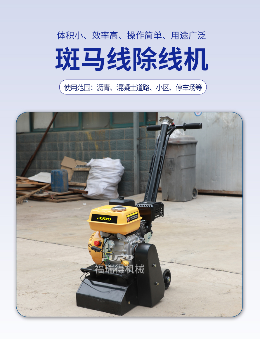 特點(diǎn):體積小、重量輕、機(jī)動靈活、工作效率高、操作簡單。 適應(yīng)范圍:主要用于瀝青道路、混凝土道路、物業(yè)小區(qū)、機(jī)場、停車場等地的標(biāo)線清除。