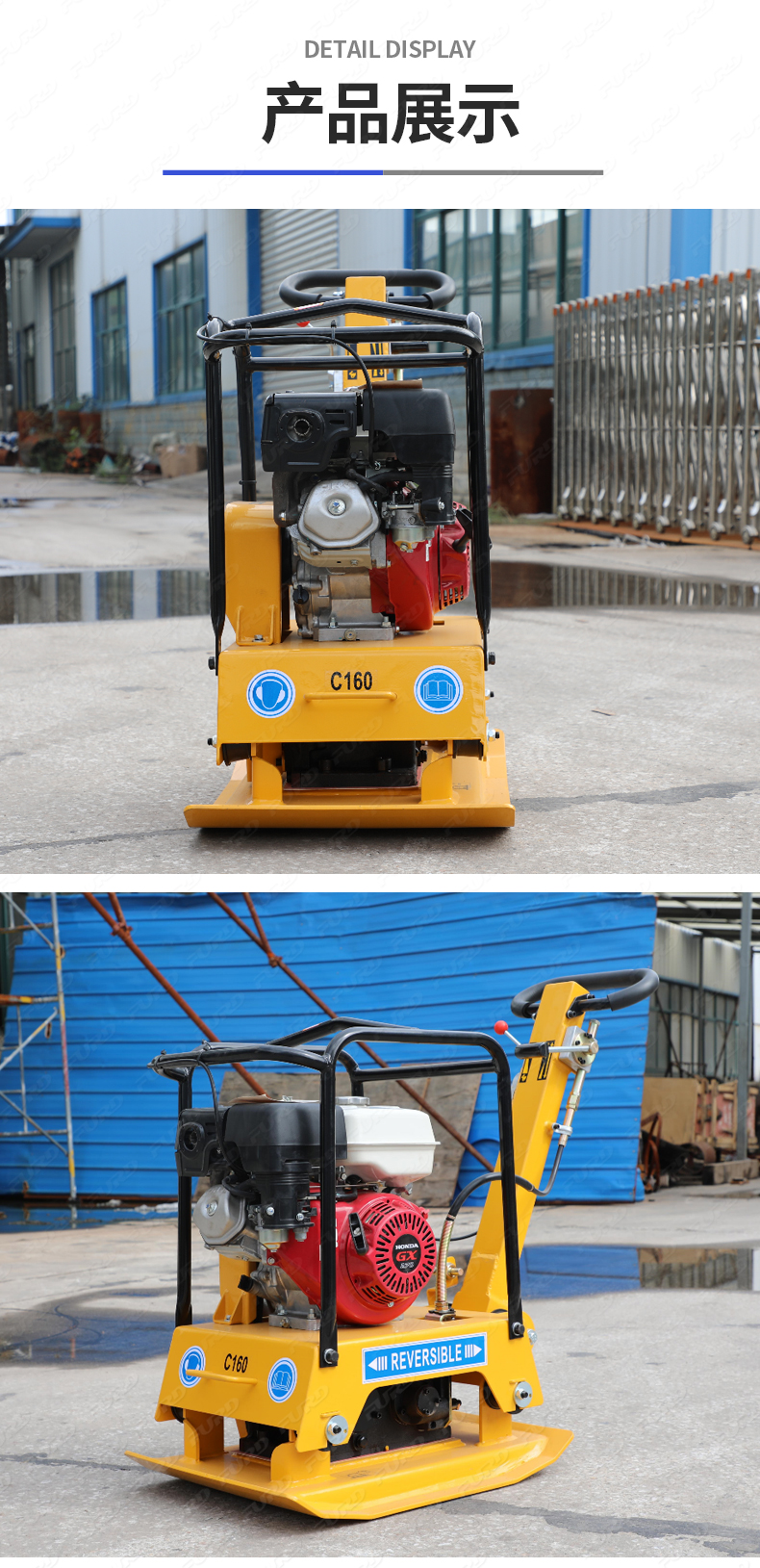 適用于路基邊緣、橋涵、管道、溝槽底部等狹長地帶的壓實。 本田汽油動力,名牌品質(zhì)保證。